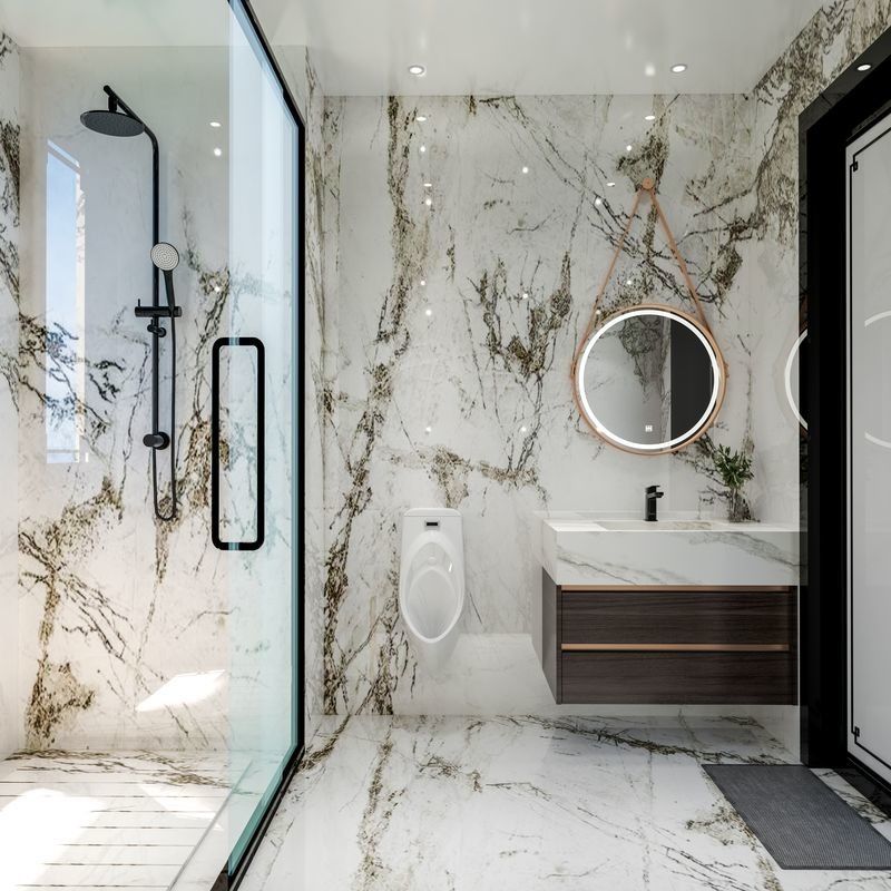 | پنلهای دیوار و کف | مرمر رگهدار سفید و مشکی، که با لمسی از لوکس بودن، زیبایی کلی را افزایش میدهد |