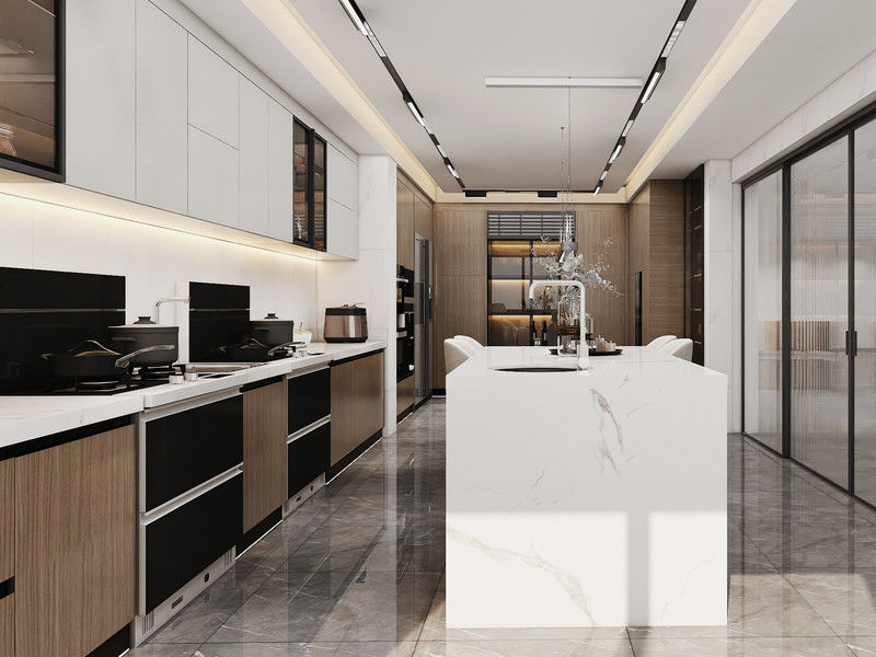 با آخرین خلاقیت فادیور، کابینت آشپزخانه ای که لوکس مدرن را دوباره تعریف می کند، تجسم زیبایی مدرن را کشف کنید.اين کابينت به طرز زيبايي ساخته شده با رنگي سفيد و لاک شده و با رنگ هاي خشکي تيرهکف سنگ مرمر تیره عمق و شکوفایی را اضافه می کند، در حالی که سقف سفید، مجهز به چندین لامپ روشنایی، اتاق را در یکدرخشش دعوت کننده.