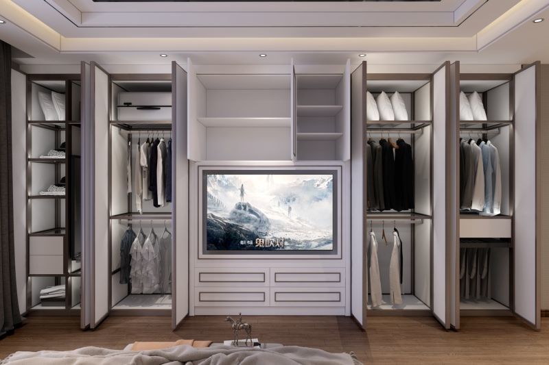 | ویژگیهای اضافی | فضای مرکزی تلویزیون با کابینت و کشوها احاطه شده است که فضای ذخیرهسازی فراوان و کاربردی را فراهم میکند. |