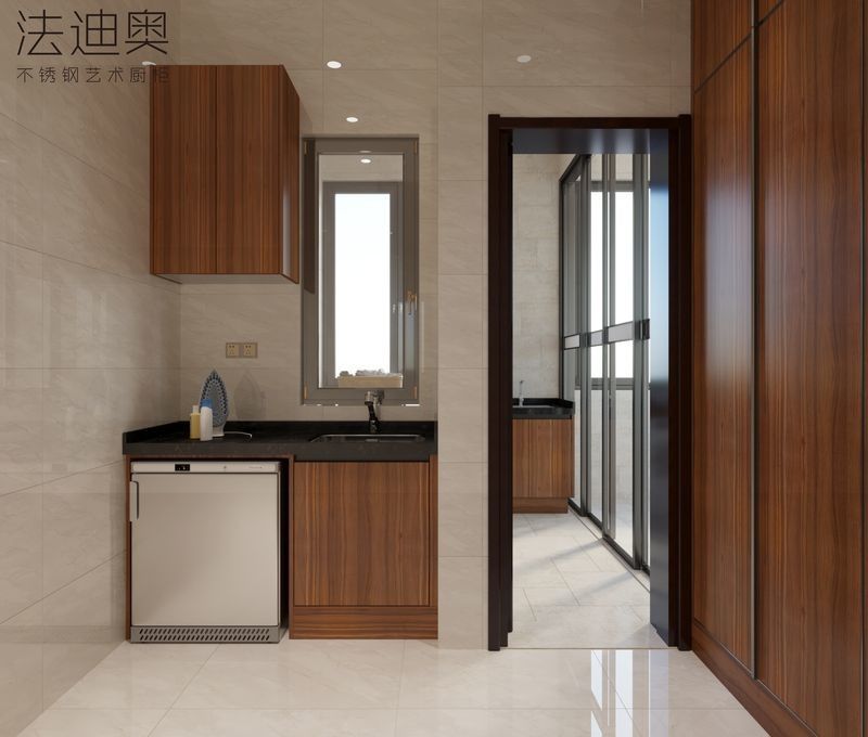 این کابینت لباسشویی سفارشی در اطراف یک استراتژی فرعی ساخته شده است: دانه چوبی با ساختار کابینت فولاد ضد زنگ.این ترکیب به خریداران یک بیان گرمی لوکس بدون از دست دادن قابلیت تمیز کردن و دوام پروژه انتظار می رود از کابینت فولاد ضد زنگ.