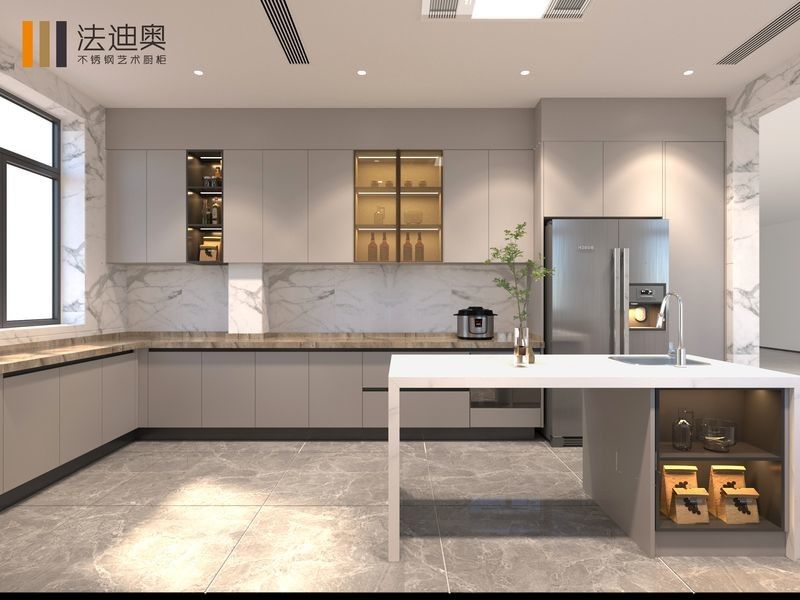 | سوال: چرا این کابینت آشپزخانه مدرن ظریف شکل U از فولاد ضد زنگ با ساختار فولاد ضد زنگ ترکیب شده است؟ ارزشش اینه که خاکستری به پروژه گرما میدههویت بصری بیشتر مسکونی در حالی که ساختار کابینت فولاد ضد زنگ سیستم کابینت را آسان تر نگه می دارد و برای استفاده طولانی مدت قابل اعتماد تر است. |