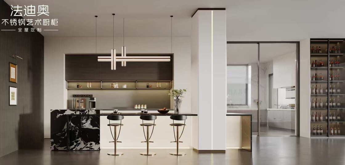 این کابینت آشپزخانه به عنوان یک سیستم طراحی شده به جای یک SKU عمومی ارائه می شود.از رنگ سفید همراه با ساختار کابینت فولاد ضد زنگ استفاده می کند تا هویت بصری بیشتری را برای پروژه های مسکونی برتر ایجاد کند.