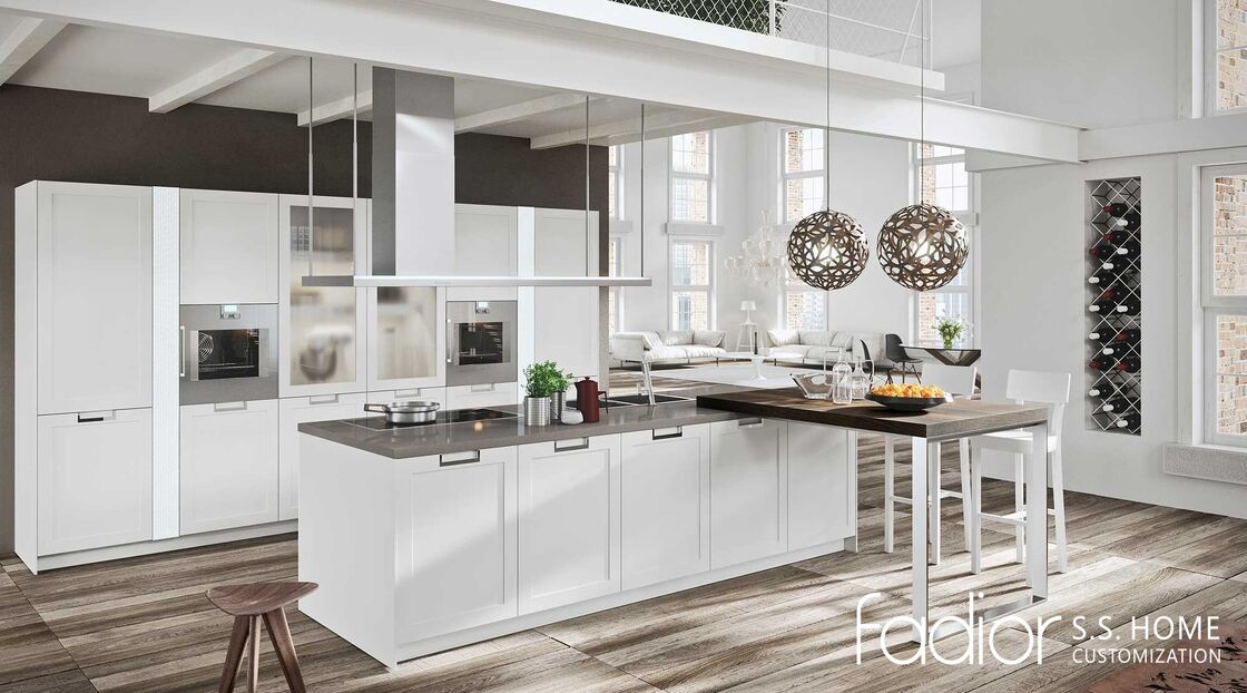آشپزخانه مینیمالیستی سفید روشن ایجاد یک |