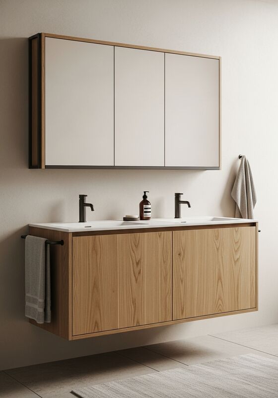 فادیور این کابینت روشویی را به عنوان یک راه حل درجه پروژه معرفی می کند که بر اساس بدنه ساختاری فولاد ضد زنگ گرید غذایی 304 ساخته شده است؛ روکش بلوط ژاپنی طبیعی (رگه مستقیم، مات روغنی)؛ پنلهای فولادی با پوشش پودری سفید مایل به کرم؛ قابهای تزئینی آهنی سیاه دستساز، رگه مستقیم، رنگ عسلی گرم، سطح مات روغنی، الگوی رگه قابل مشاهده اما محدود، و رویه سنگ مرمر صیقلی یا سنگ متخلخل برای روشویی حمام اصلی برای فضاهای مسکونی که به دنبال محیطهای صبحگاهی آرام و آیینمحور هستند؛ مناسب برای معماران و طراحانی که فضاهای داخلی ژاپنی یا مینیمال گرم را مشخص میکنند. این مشخصات بر هسته فولاد ضد زنگ 304 با پنلهای جلویی روکش بلوط ژاپنی طبیعی تمرکز دارد - رگه مستقیم، رنگ عسلی گرم، پرداخت مات روغنی، ذخیرهسازی بالایی با پوشش پودری سفید مایل به کرم با سطح صاف تخممرغی - سفید مایل به کرم با گرمای زرد ظریف، بنابراین طراحان، فروشندگان و خریداران پروژه میتوانند تناسب، پرداخت و منطق تحویل را با حدس و گمان کمتر ارزیابی کنند.