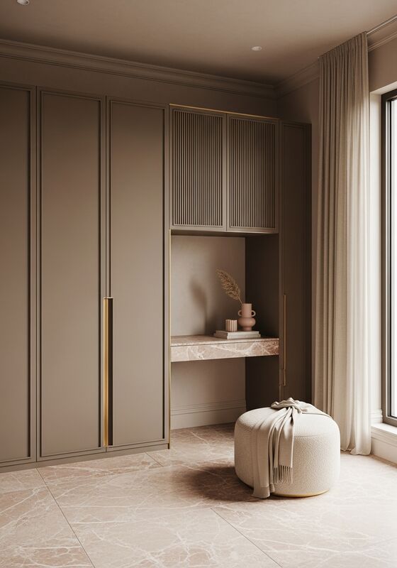 | ویژگی های طراحیحداقل سازی نرم معماری با جزئیات لمس کننده، لایه بندی تن گرم، ابعاد دقیق مناسب برای کودکان با درجه حرارت تپل قارچ،رنگ های سازگار با پرده های شامپاین سفید، لهجه های فلزی طلا شامپاین، مرمر گلابی نرم سازگار، نسبت های انضباطی، و درب های عمودی با پنل های کوچک در 15 میلی متری برای ریتم سایه ملایم.صفحه باید به عنوان یک مشخصات حل شده خوانده شود، نه جعبه ی ذخیره ی عمومی |
